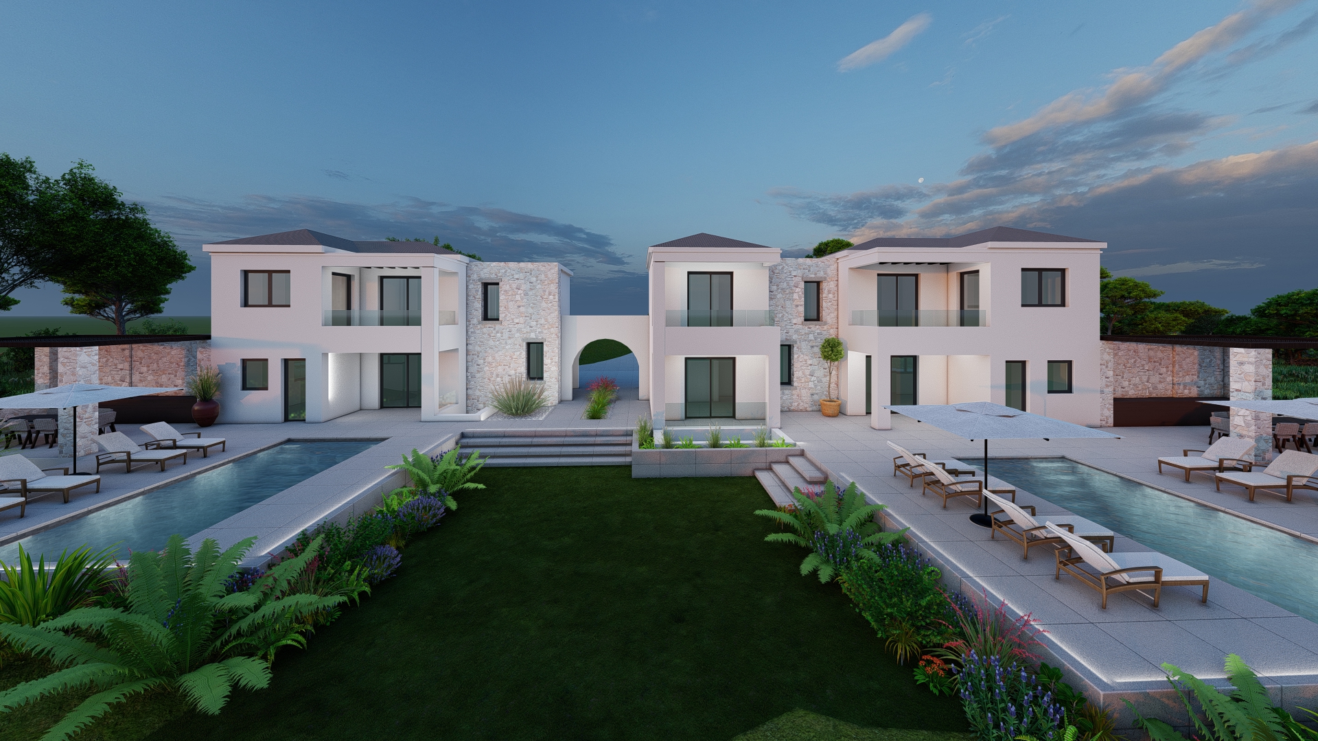Νέα διώροφη εξοχική κατοικία με πισίνα